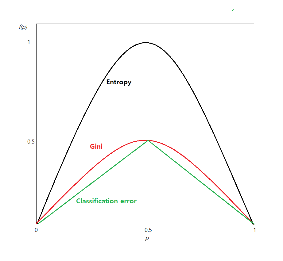 $$ \small \begin{align} \text{Entropy coefficient} &= - 0.4 \times log_{2} 0.4 - (1-0.4) \times log_{2} (1-0.4) = 0.9710 \\ \text{Gini coefficient} &= 1 - {0.4}^2 - (1-0.4)^2 = 0.4800\\ \text{Classification error rate} &= 1 - max\{0.4 , 1-0.4 \} = 0.4000 \end{align} $$ |