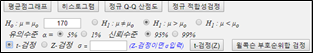 검정결과가 나타난다([그림 7.6]). 선택 창에서 Z 검정을 선택할 수도 있다. 이 경우에는 모표준편차 σ를 입력하여야 한다.