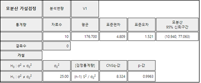 모집단의 분산을 가설검정하기 위한 예는 다음과 같다.